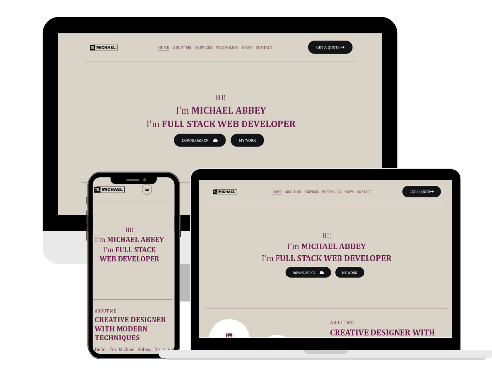 Hello, I Am Michael Abbey, A Full-Stack Web Developer That Is Highly Motivated and Imaginative By Finding Inspirations In Everyday Things I Do, Pushing My Own Boundaries and Allowing Myself to Think Outside of The Box. I Am Skilled In Html/CSS, Bootstrap, Python, And Django. I Have Experience In Building And Maintaining Responsive Websites. I Love Solving Problems, Working Within a Team, And Bouncing Ideas Off Each Other To Find A Solution.